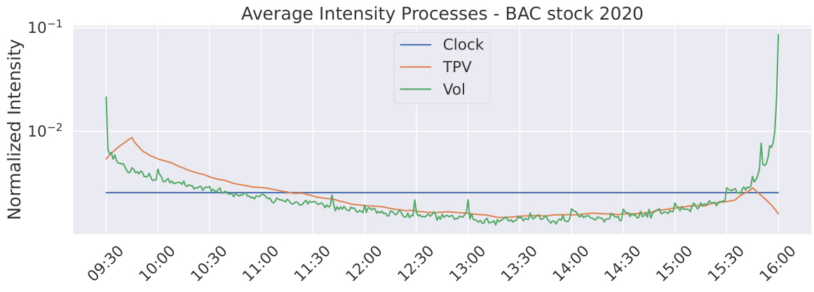- Clock示意均匀分布,TPV表现波动高峰集中于开盘,Vol显示典型的U形交易量曲线并有整点峰值