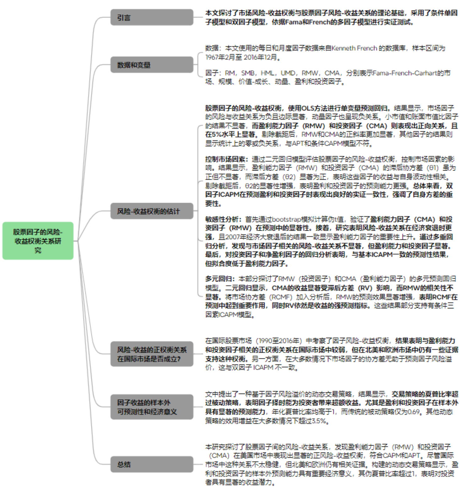 指出条件CAPM预期风险-收益正相关,文献显示市场风险和收益存在复杂的相关性,有时为正有时为负。类似地,因子风险-收益权衡也可建模为单因子APT或双因子ICAPM框架之下机制,具体以市场因子及多空股票因子来刻画。