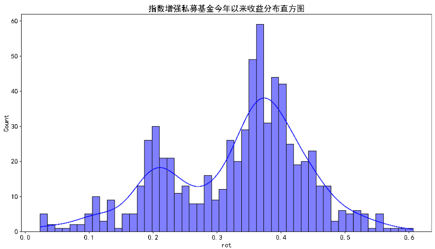 - 指数增强产品收益分布显示大部分产品收益集中在8-11%,整体表现均衡且高效。