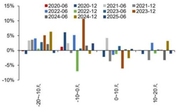 - 事件驱动与资金流动影响: 指数调整引起被动基金调仓,带来较为明确的资金流冲击。虽然市场对事件愈趋熟悉,定价博弈更为活跃,但调整前的定价趋势较为明显。