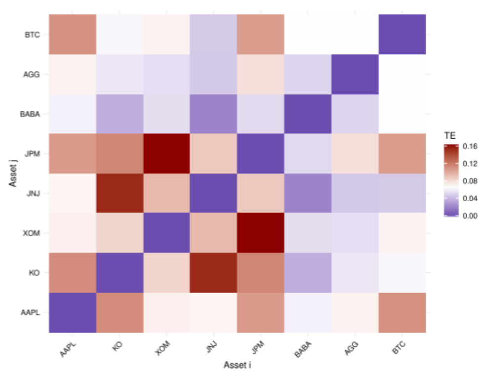 - 转移熵(TE)作为一种信息论工具,用以度量资产间的非线性、定向信息流,区别于传统相关系数的对称性限制。