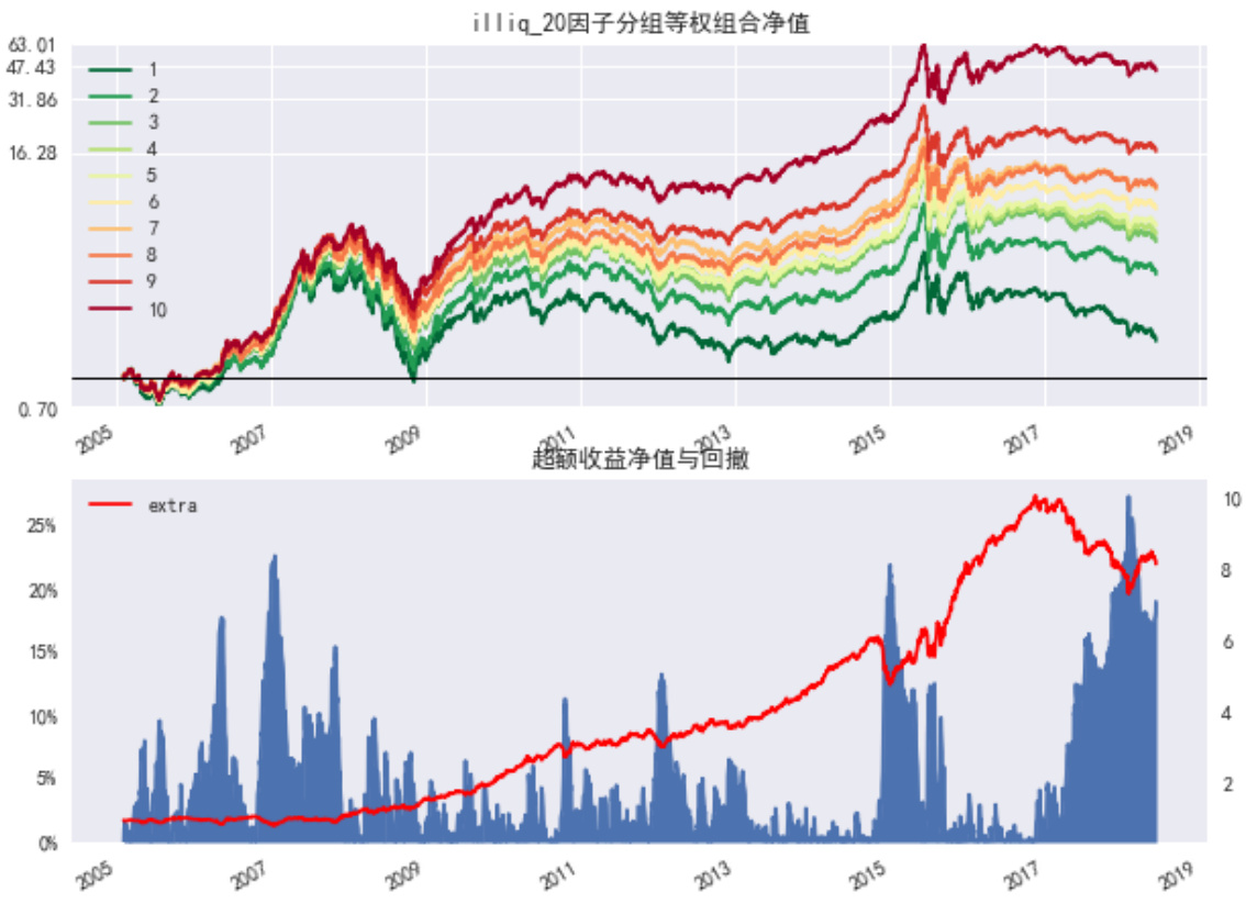 - 图2分组净值曲线显示第10组(非流动性最强)大幅领先,收益超额累积并波动;