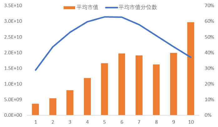 - 图9 Illiq因子分组收益率与平均流通市值分布(市值分组前)