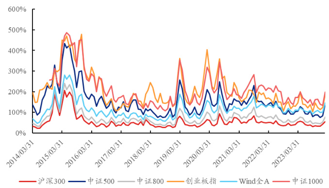 - 换手率大幅提升,主流宽基指数换手率均超历史中位数水平,市场活跃度明显增加。