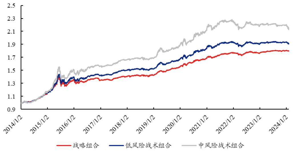 - 战术组合通过股票择时及债券久期轮动优化,增强收益表现。