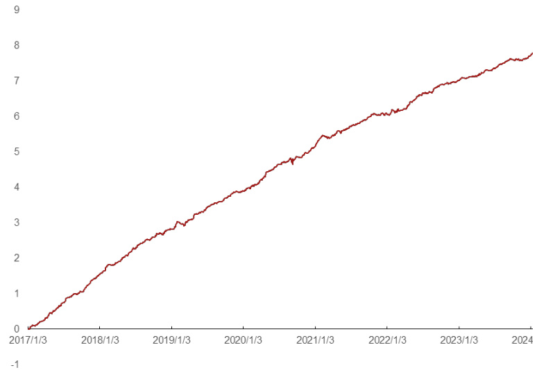 - 沪深300策略全市场/成分股内选股差异不大,信息比率超过4,跟踪误差在3.6%左右,风险回撤可控;