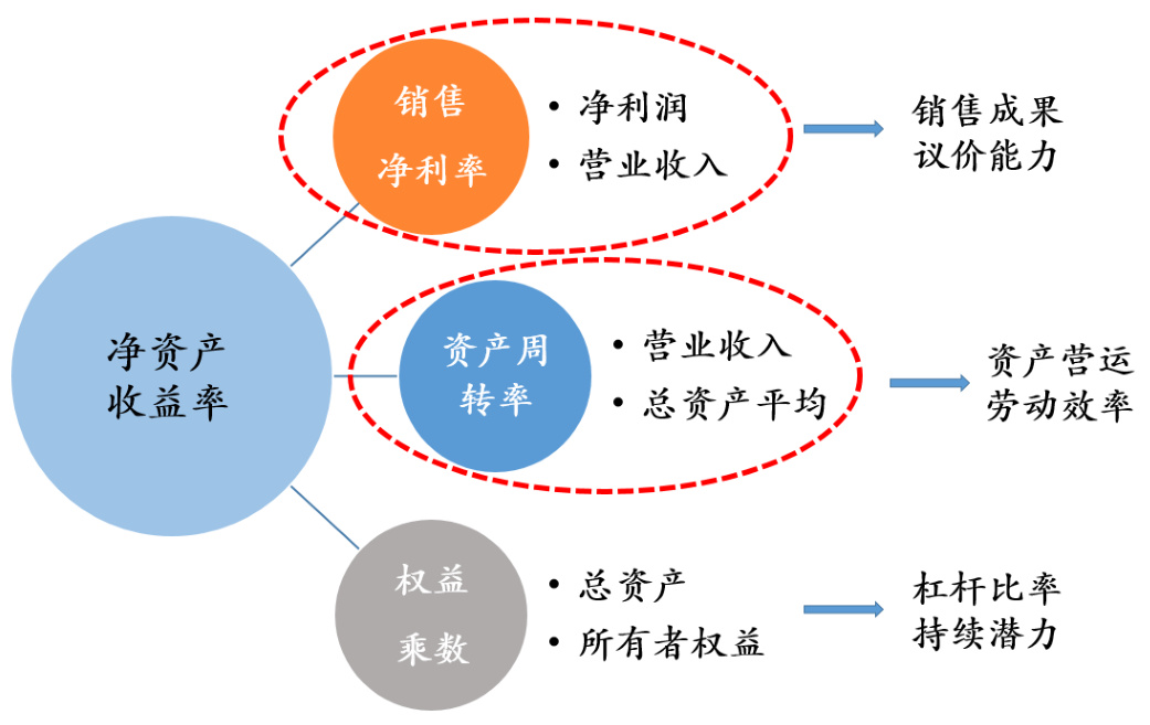 清晰展示净资产收益率由销售净利率、资产周转率和权益乘数三因素构成,分别对应企业的利润率、运营效率及杠杆水平。报告基于此框架剖析ROE质量,理解不同企业盈利贡献来源,剔除高杠杆影响,筛选优质“核心资产”。[page::4]