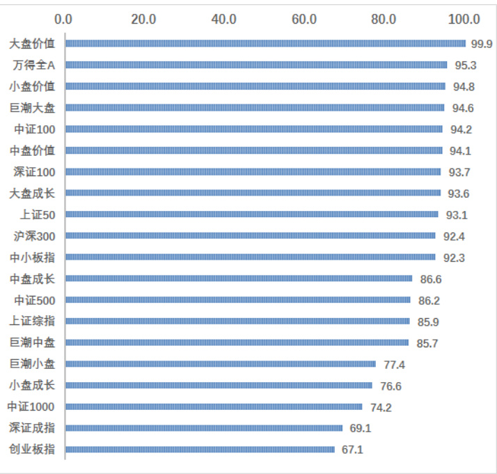- 价格分位图显示大盘价值类居高不下,创业板低位。