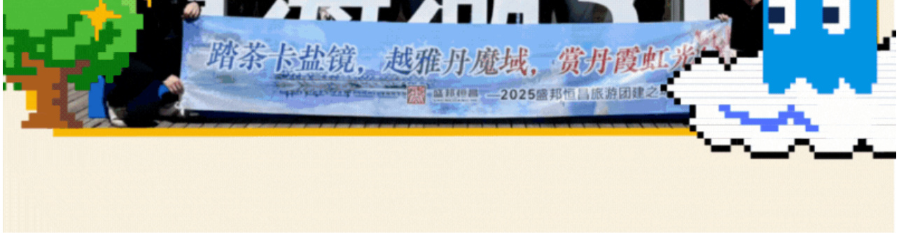 - 图中显示具体的旅游场景,例如海湖、盐镜、丹霞等地,传递企业关怀文化。