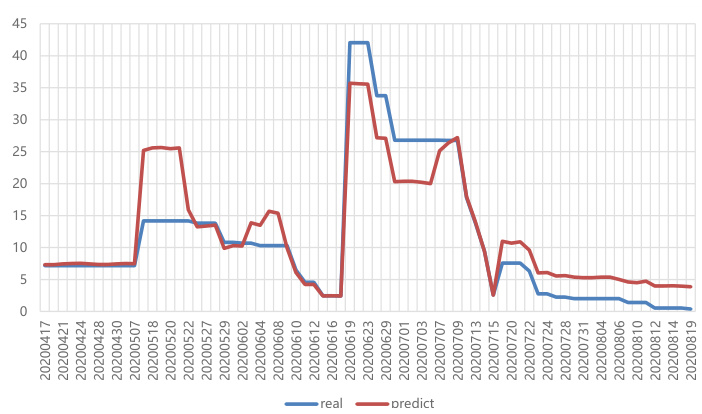 - 在2017-2020年多个期指合约期限内,将每日预测的股息点与实际观察值对比,评价预测模型准确性。