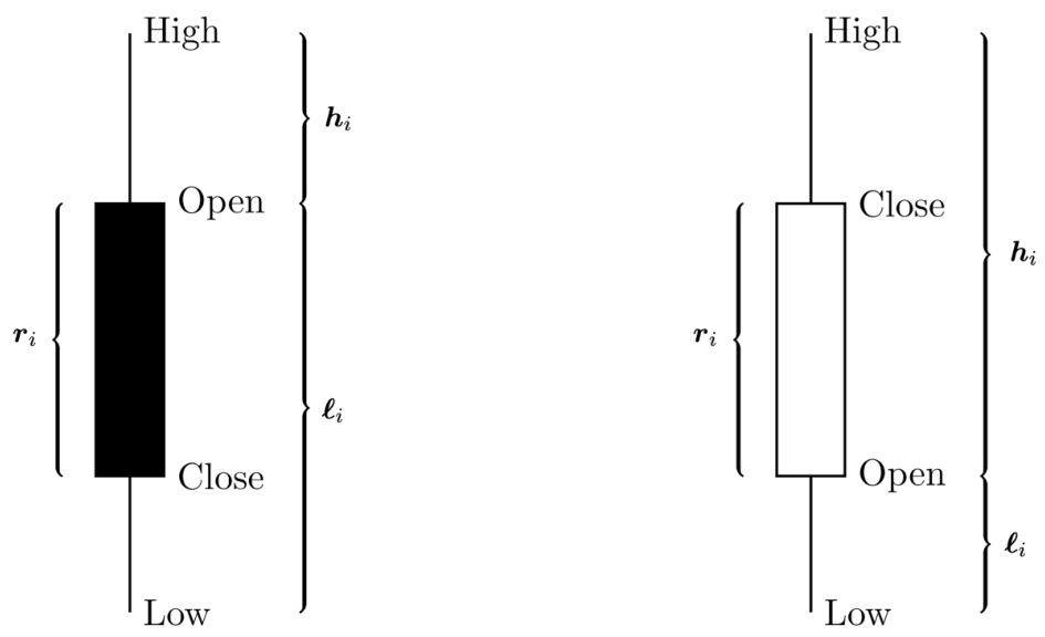 - 以典型蜡烛图形象展示$ri, hi, \elli$变量。