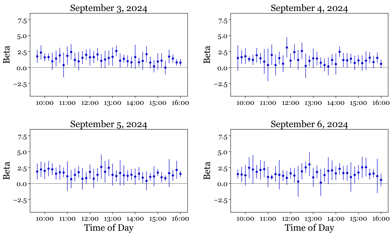 - 实证中,IBIT基于1分钟蜡烛数据在2024年整体表现出非市场中性,尤其在市场压力期更明显。