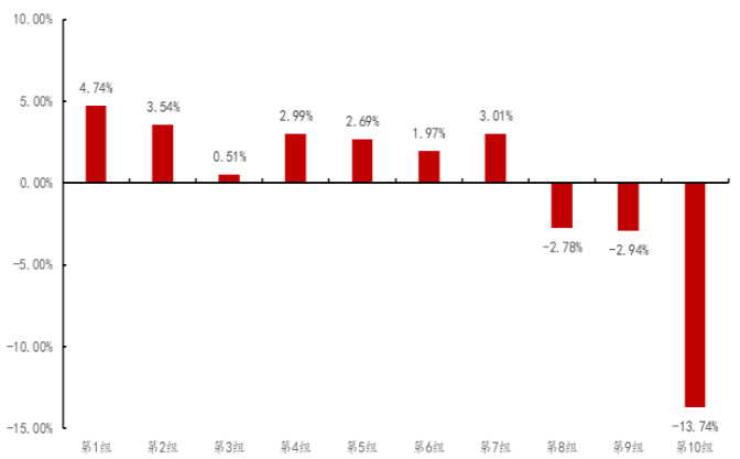 - 多空年化收益33.02%,信息比率3.19,周度IC均值-3.13%,年化ICIR-3.32。