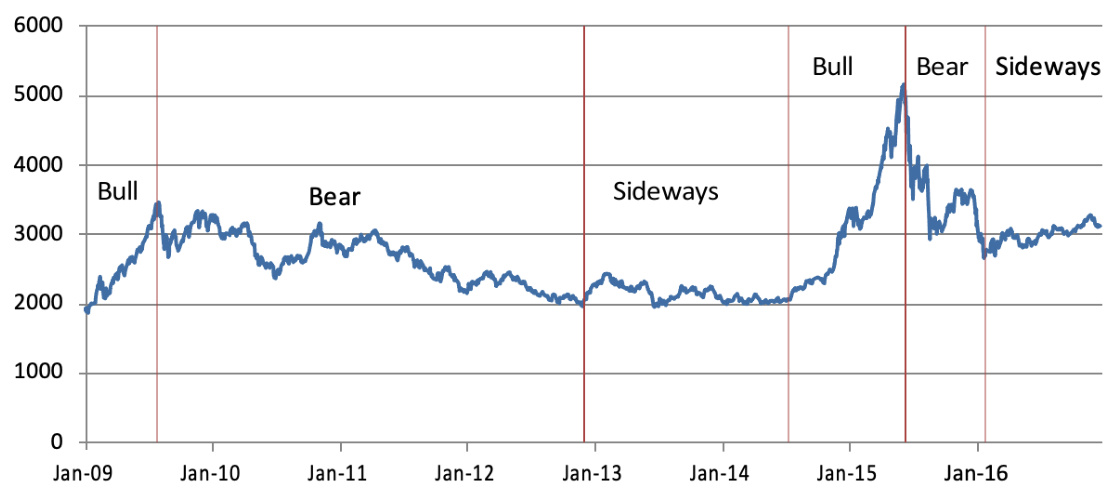 图表1 上证综指走势(2009-2016)