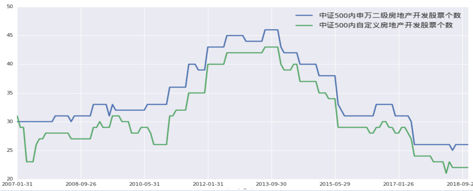 图表5/9:HS300及ZZ500内自定义房地产开发股票个数变化趋势