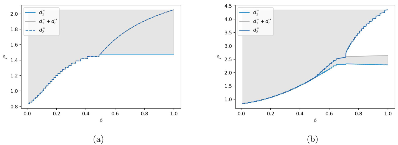 - 随着δ增加,保险人倾向保留更多风险(减少转移),导致保险人风险函数提升,但再保险人风险却下降,表明变动保费方案有利于再保险人风险管理。