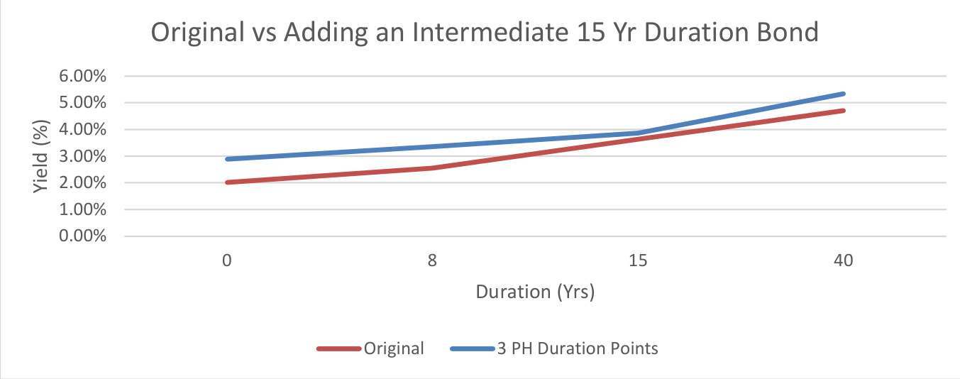 - 加入中间期限债券(RendA 2035)使期限结构曲线更加平滑且总体上扬。